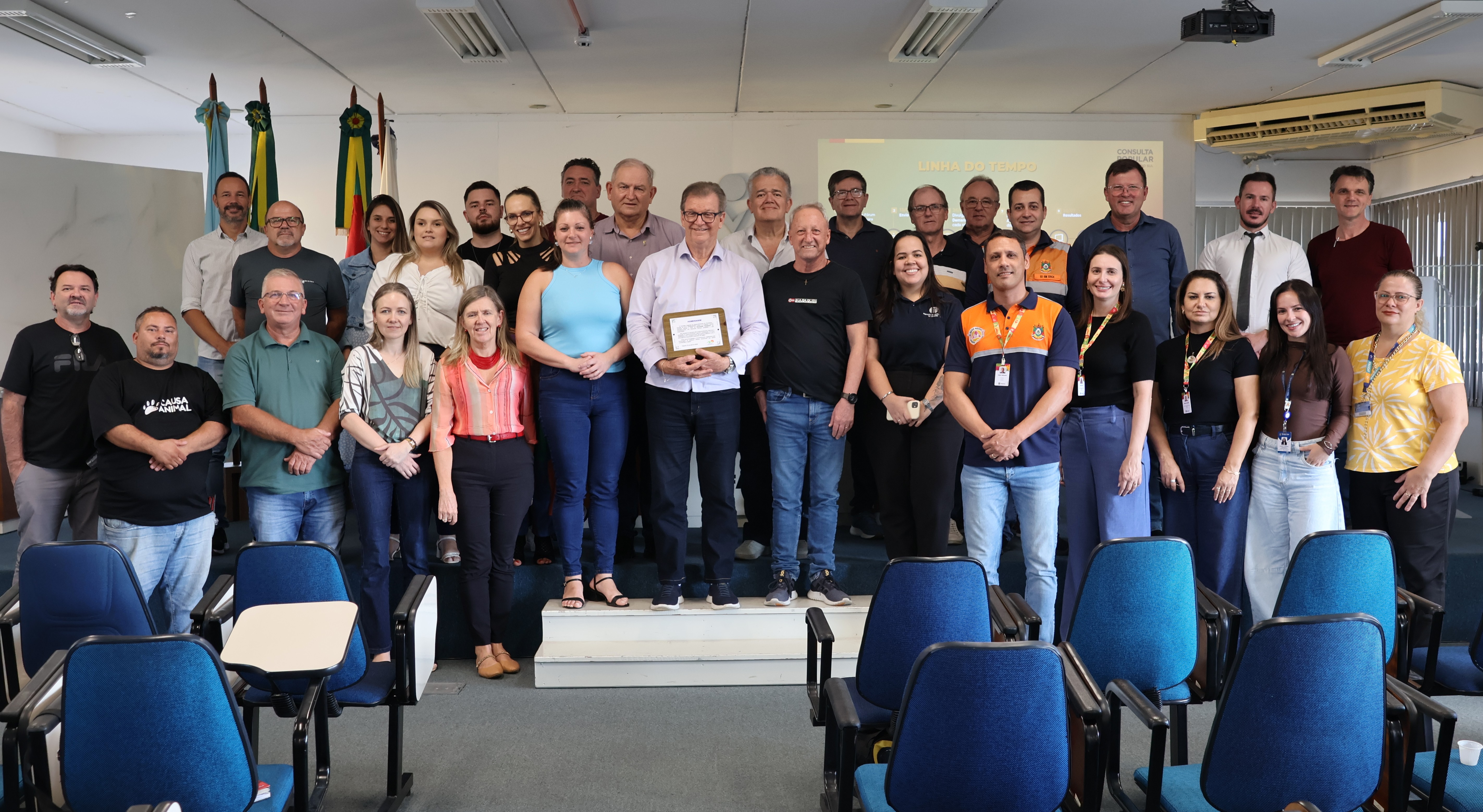 O encontro também foi marcado por uma homenagem ao presidente benemérito do Corede Paranhana/Encosta da Serra, Delmar Backes. Ele recebeu uma placa de reconhecimento pela atuação desde a criação do Conselho e pela contribuição ao desenvolvimento regional.