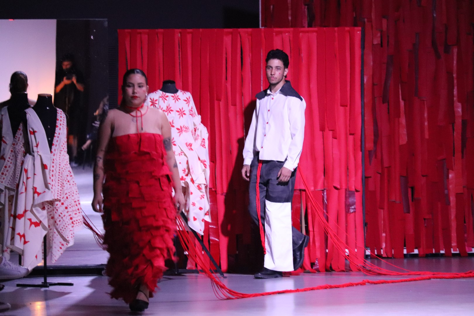 Sob coordenação e orientação da professora Natália Forte, os 17 estudantes mergulharam em um intenso processo de criação ao longo do semestre. Cada um desenvolveu dois looks: um comercial e outro conceitual, ambos inspirados na narrativa amorosa escolhida. “A gente passa por repertórios que vão da mitologia aos filmes, discos, casamentos e patrimônios culturais. É um processo profundamente criativo”, destacou Natália. Ela também relembrou o desafio adicional deste ano: o uso obrigatório de cadarços, materiais frequentemente descartados na indústria calçadista. O objetivo foi ressignificar essas sobras, transformando desperdício em estética.